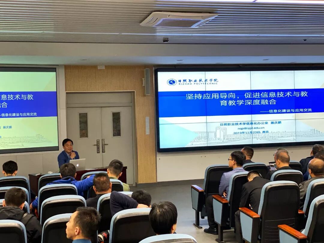 此外,日照职业技术学院信息化办公室聂主任也分享了该校学校信息化建设情况及观点。聂主任认为如今的教育信息化建设必须瞄准信息技术和人工智能等新技术发展前沿,以打造“教学靶向赋能、管理数据驱动、网络无界延伸、服务精准触达”的智慧校园为目标,以全面推进“智能+”为手段,将信息技术和智能技术全面融入学校教育教学和管理服务。